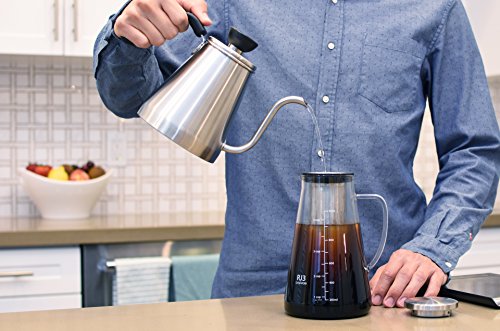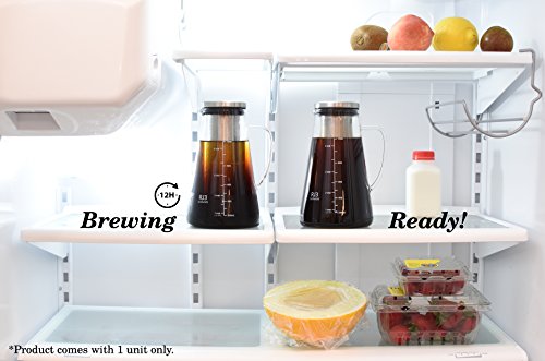 -. Feature : ➤ SMOOTHER COFFEE, EVERY TIME - Serious coffee lovers know that cold brewing makes coffee less acidic and smoother in taste - unlike hot brewing that can extract the wrong flavors. Our cold brew maker is perfect for making great tasting coffee concentrate that can be mixed with hot or cold water or milk to create different coffee beverages. / ➤ FRESHER, RICHER BREWS - Our cold brew maker uses a durable, airtight seal that locks in freshness and flavor for up to 2 weeks. The seal slows the oxidation rate and blocks out any fridge odors. / ➤ GREAT FOR ICED AND HOT TEA - RJ3 Cold Brew Maker also works great brewing loose leaf tea and tea bags. You can brew it hot like a traditional tea pot or brew it cold in the fridge. / ➤ DURABLE AND EASY TO USE - We use an 18/8 stainless steel filter and cap so rust will never be a problem and a BPA free silicon to provide the airtight seal. Plus, our extra thick glass walls keep coffee colder for longer. / ➤ SATISFACTION GUARANTEE - We are a third wave coffee company, dedicated to helping you bring out the best in every coffee bean. We take great pride in the quality of our products, which is why we are offering you a Risk-Free purchase. In the unlikely event our product fails to meet or exceed your expectations, you are free to return it, within the first 30 Days, post-purchase and receive a FULL refund.