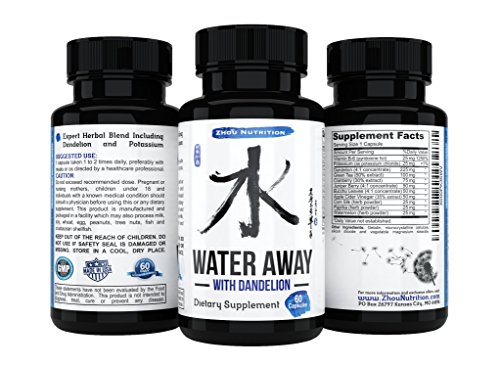-. Binding : Health and Beauty -. Brand : Zhou Nutrition -. EAN : 0637769765866 -. Feature : LOSE WATER WEIGHT OR YOUR MONEY BACK! Are you looking for a natural way to relieve water retention? When taken on a consistent basis, Zhou Nutrition's Water Away is GUARANTEED to help you relieve that annoying water weight, bloating and swelling. Get relief or your money back! / NATURAL & SAFE ALTERNATIVE - Zhou Nutrition's Water Away is in a class of its own because it gives you natural results without unnatural side effects. / GENTLE RELIEF FROM WATER WEIGHT, BLOATING & SWELLING - Our potassium sparing formula provides gentle relief from unwanted water weight & bloating. / SUPERIOR QUALITY STANDARDS - Unlike some competitors, Water Away undergoes a strict set of processes, procedures and documentation to assure each bottle has the accurate identity, strength, composition, quality and purity that appear on its label. When you order from Zhou Nutrition, you order with confidence! / 60 DAY 100% MONEY BACK GUARANTEE - Return even the empty bottles! We are so confident that you will love our Water Away that we will refund every penny if you don't like it! What do you have to lose? Click 'add to cart' and start losing that unwanted water weight. -. Label : Zhou Nutrition -. Manufacturer : Zhou Nutrition -. PackageQuantity : 1 -. ProductGroup : Health and Beauty -. ProductTypeName : HEALTH_PERSONAL_CARE -. Publisher : Zhou Nutrition -. Studio : Zhou Nutrition -. Title : Natural Diuretic Water Pill with Dandelion & Potassium to Lose Water Weight - Relieve Bloating, Swelling & Water Retention With This Premium Herbal Supplement Blend - 60 Capsules - Made in the USA -. UPC : 637769765866