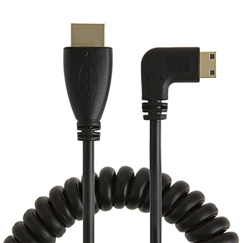 Mini HDMI to HDMI, CableCreation Coiled Right Angled Mini-HDMI Male to HDMI Male Converter Adapter Cable, Support 3D, 1080P Resolution, 1~4 Feet/ Black
