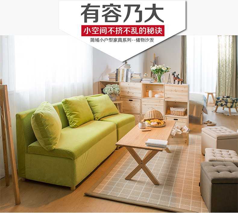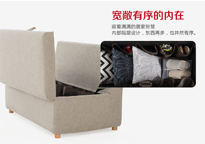 简域小户型布艺沙发 多功能实木储物单人双人沙发 家用收纳布沙发
