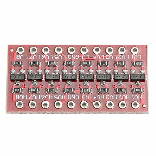 Studio : NDBD Publisher : NDBD Binding : Misc. Product Description 8 Channel Logic Level Translator Converter Bi-Directional Module Introduction: If you've ever tried to connect a 3.3V device to a 5V system, you know what a challenge it can be. The SparkFun bi-directional logic level converter is a small device that safely steps down 5V signals to 3.3V AND steps up 3.3V to 5V at the same time. This level converter also works with 2.8V and 1.8V devices. What really separates this Logic level converter from our previous versions is that you can successfully set your high and low voltages and step up and down between them safely on the same channel. Each level converter has the capability of converting 4 pins on the high side to 4 pins on the low side with two inputs and two outputs provided for each side. The level converter is very easy to use. The board needs to be powered from the two voltages sources (high voltage and low voltage) that your system is using. High voltage (5V for example) to the 'HV' pin, low voltage (3.3V for example) to 'LV', and ground from the system to the 'GND' pin. Feature: 8-channel high-voltage and low-voltage logic bidirectional translation Mini size, 4.1cm x 1.8cm Comes with 2 rows of 6pin, unsoldered Compatible breadboard, can be directly inserted in the breadboard Note: (For example: High voltage: 5V, low voltage: 3.3V) HV connect 5V power supply LV connect 3.3V power supply GND connect negative, two power supply commons LVx input and output is 3.3V TTL, HVx input and output is 5V TTL, LVx and TVx bidirectional transfers Package includes: 1 x 8 Channel Logic Level Translator Converter