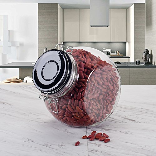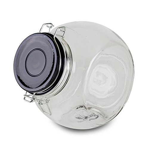 Housewares International 33905 Blue Harbor Slant Jar Glass with Metallic Lid, 76 oz, Black