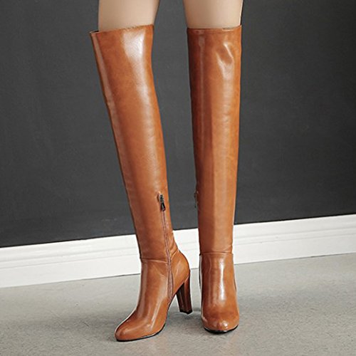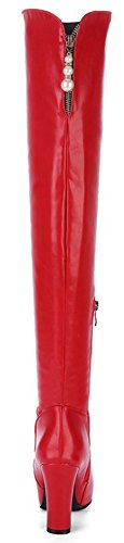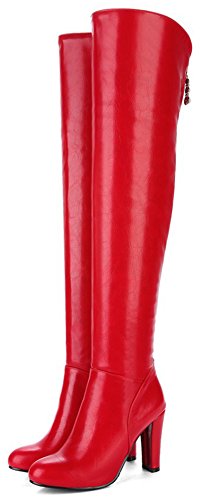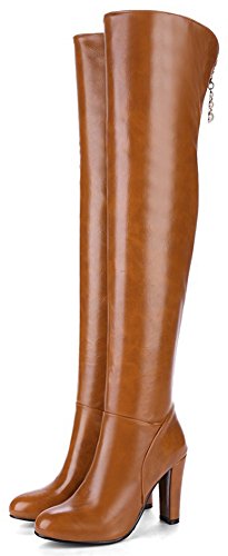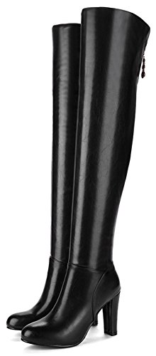 (Mofri)/Women's/Boots/DIRECT FROM USA/Mofri Women's Sexy Pendant Round Toe Block Chunky High Heel Side Zipper Thigh High Long Riding Boots