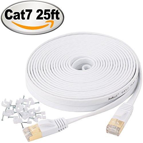 Jadaol Cat 7 Ethernet Cable 25 ft White –Shielded (STP) Computer Cable With Snagless Rj45 Connectors– 25 feet White (7.62 Meters)