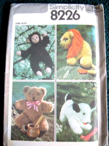 -. Title : STUFFED TOY SEWING PATTERN BEAR, LION, MONKEY AND DOG - VINTAGE SIMPLICITY SEWING PATTERN 8226