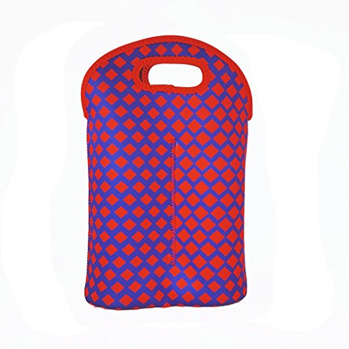 Stylish Neoprene Tote Double Bottle Sleeve Protector, Travel Camping Visit Gift Storage Handbag - 750 mL (Black) (Purple Red Diamonds)