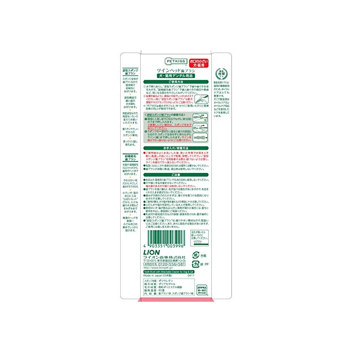 원본상품명:ペットキッス (PETKISS) ツインヘッド?ブラシ お口の小さい犬猫用 1本