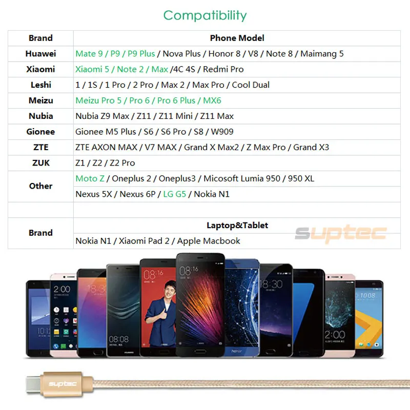 Compatible Model 3:USB Type-C Cable for Xiaomi Mi5 Mi4C Huawei P9 P9 Plus Mate 9 Moto Z
