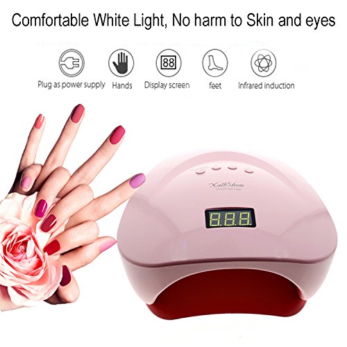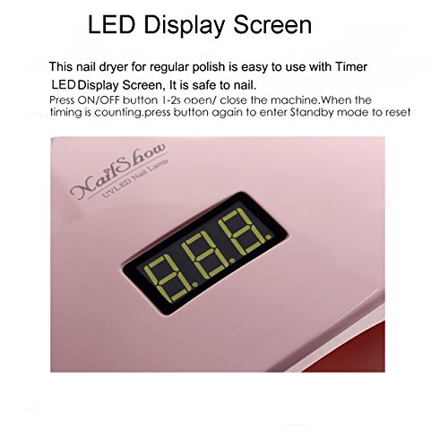 Nail Dryer, NailShow 48W UV Led Nail Lamp for All opi Acrylic Hand Fingernail Toenail Gel Polish Curing Light with LED Display, Automatic Sensor and 4 Timer Setting, Pink