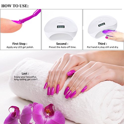 Nail Dryer, NailShow 48W UV Led Nail Lamp for All opi Acrylic Hand Fingernail Toenail Gel Polish Curing Light with LED Display, Automatic Sensor and 4 Timer Setting, White