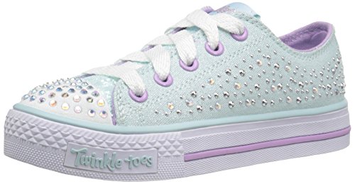 Skechers Kids Twinkle Toes Chit Chat Light-Up Lace-Up Sneaker , Light Blue/Lavender, 2.5 M US Little Kid