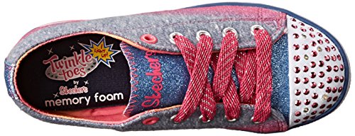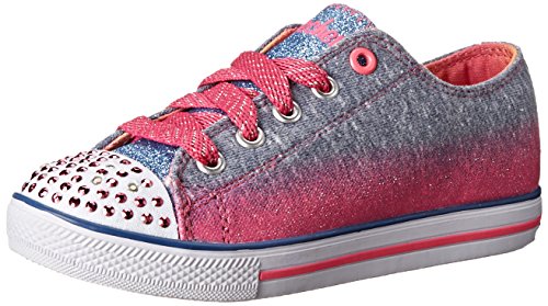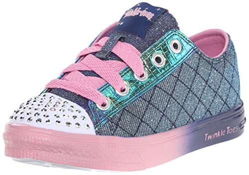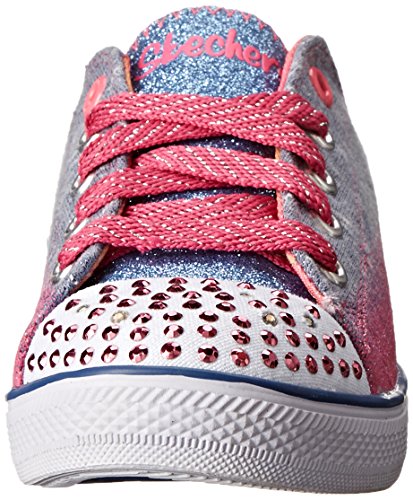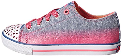 Skechers Kids Twinkle Toes Chit Chat Light-Up Lace-Up Sneaker , Denim/Hot Pink, 2.5 M US Little Kid