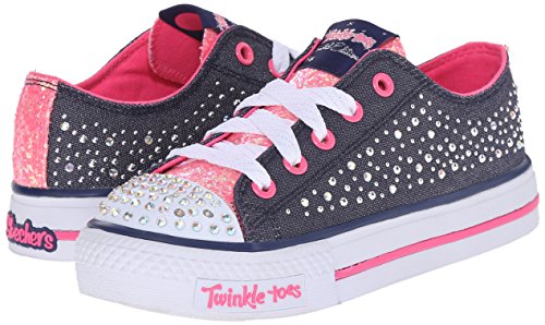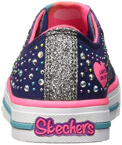Skechers Kids Twinkle Toes Chit Chat Light-Up Lace-Up Sneaker , Navy/Pink, 10.5 M US Little Kid