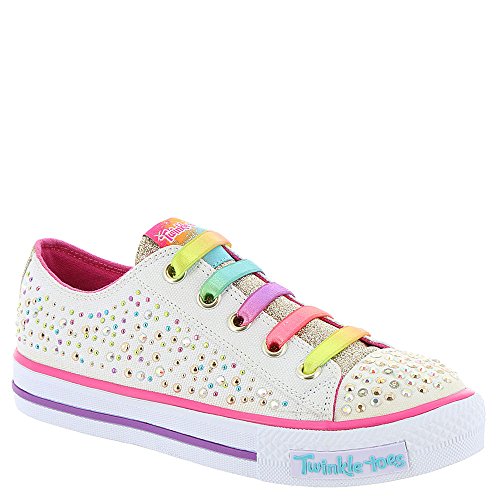 Skechers Girls Twinkle Toes Shuffles Twirly Toes Sneaker,White/Multi,US 4 M