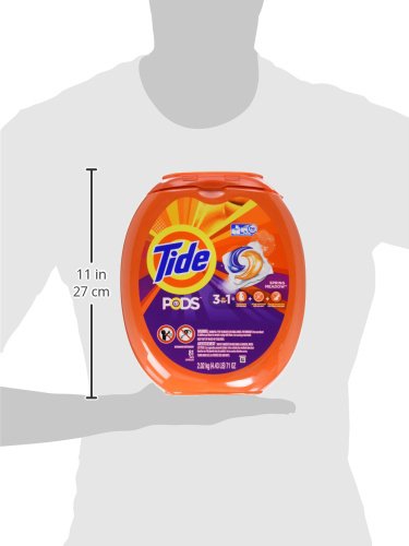-. Feature : Each Tide PODS is a 3-in-1 breakthrough technology with detergent, stain remover and color protector, giving you more bang for your buck / Tide PODS are small but powerful. They pack 6X cleaning power* in half the time with an innovative, multi-chamber design separating key ingredients until they hit the wash for maximum cleaning power (*Stain removal of 1 Tide PODS pac in Quick cycle vs 6 doses of the next leading liquid HE-compatible detergent in Normal cycle) / The special film that enables the 3-in-1 breakthrough technology dissolves in both hot & cold water. Tide PODS are formulated with quick collapsing Smart SudsTM, targets tough stains and works in both HE and standard washing machines / Tide PODS clean better by helping remove dirt left behind by the bargain laundry detergent* (*Based on 4 solid cycles with leading liquid bargain laundry detergent followed by 1 cycle with 1 dose of leading liquid bargain laundry detergent vs. 1 cycle with Tide PODS) / Use 1 pac for small/medium loads, 2 pacs for large loads, or 3 pacs for extra-large loads / Its SP.R.Ing Meadow scent is infused with fresh floral notes to help keep your family's clothes smelling as great as they look / Extra Absorb Channels to help distribute wetness evenly for up to 12 hours of protection
