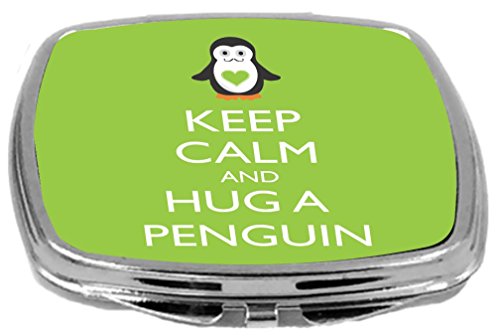 Rikki Knight Compact Mirror, Keep Calm and Hug a Penguin Lime Green