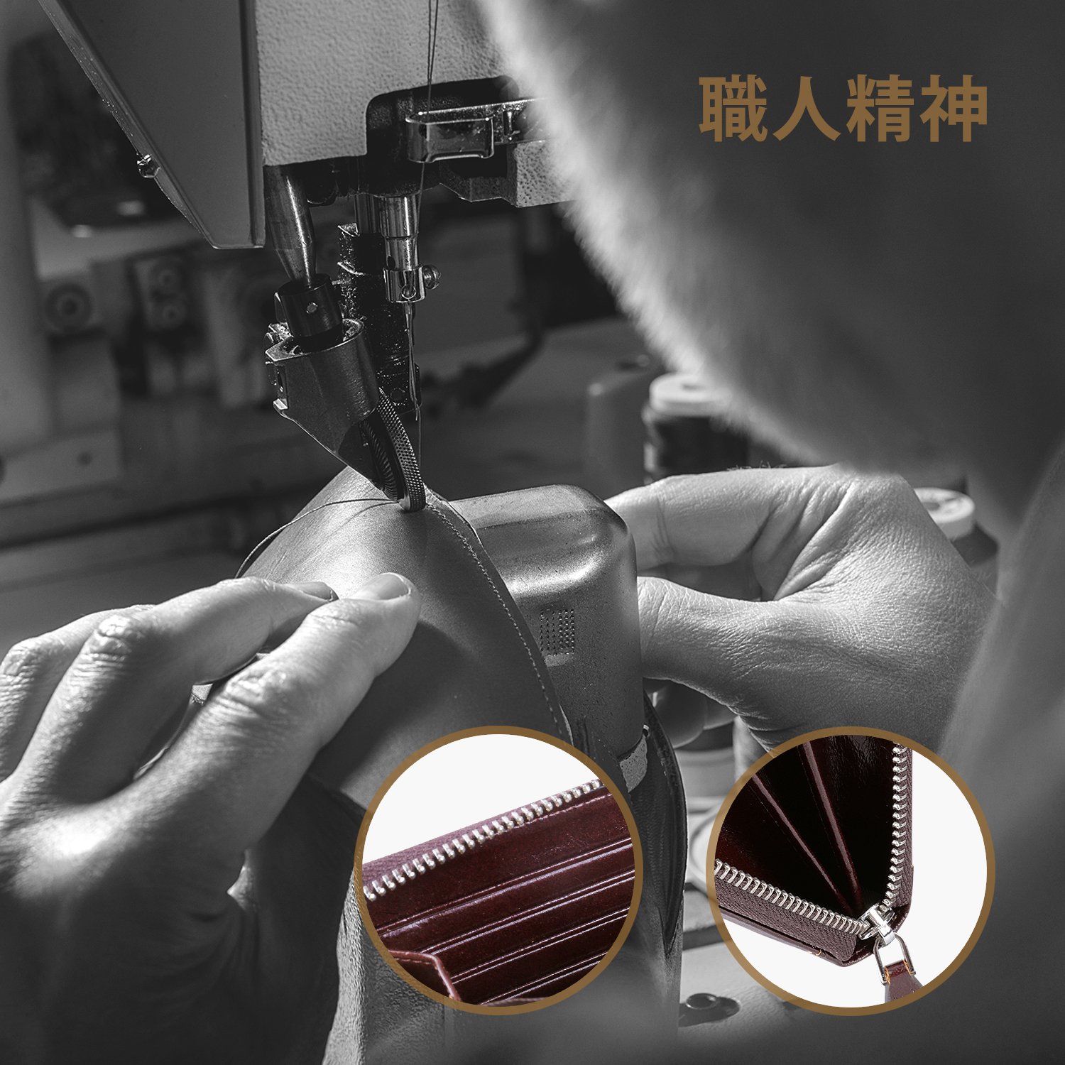The cowhide used for a long wallet has a mat gloss and is very good touch.