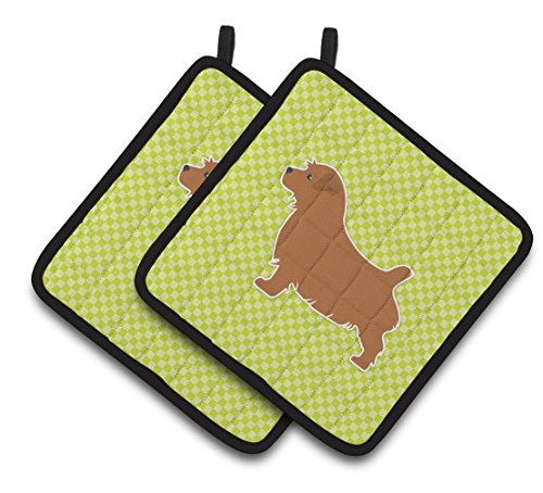 Caroline's Treasures Norfolk Terrier Checkerboard green Pair of Pot Holders BB3809PTHD, 7.5HX7.5W, Multicolor