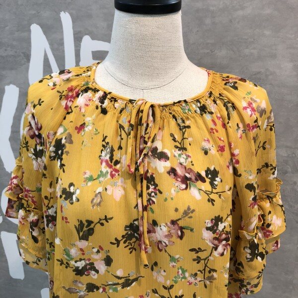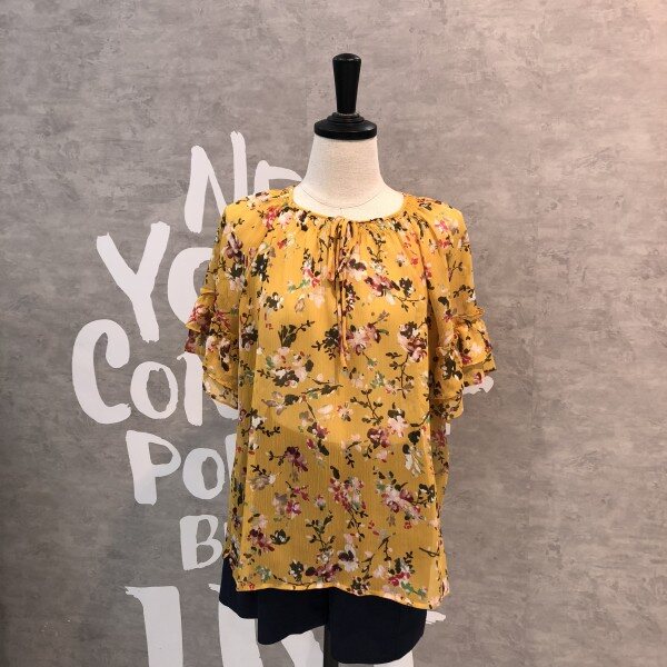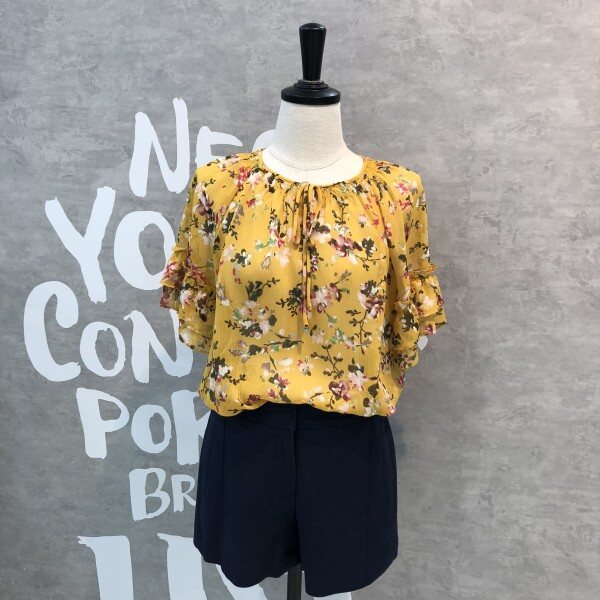 화사한 컬러감의 꽃프린트가 포인트되어 러블리하며 소매셔링과 수술디테일이 멋스러운 디자인의 블라우스입니다