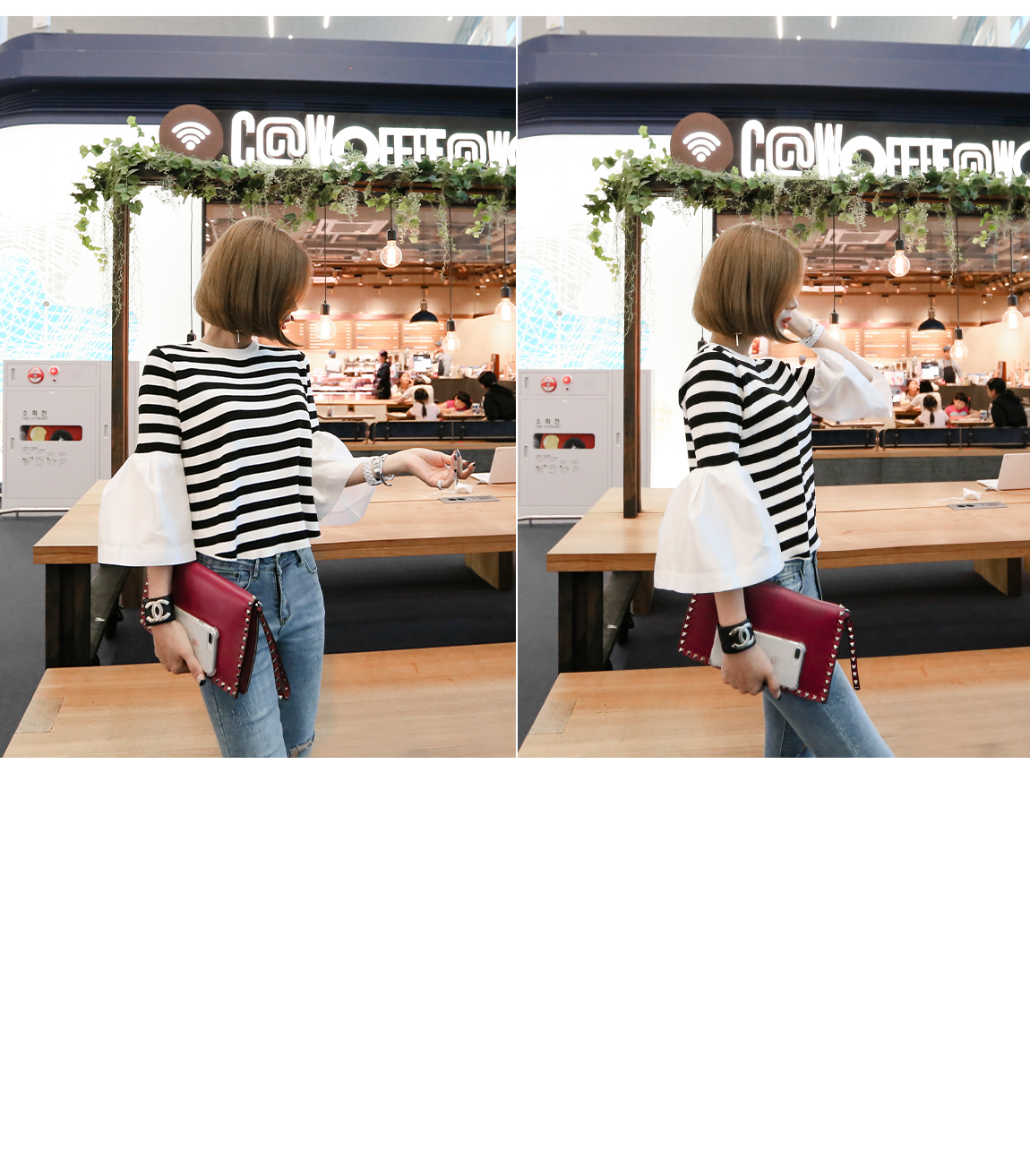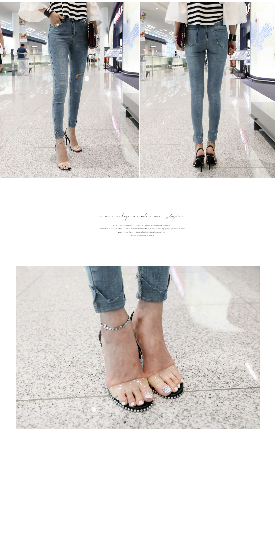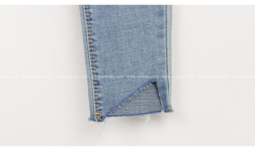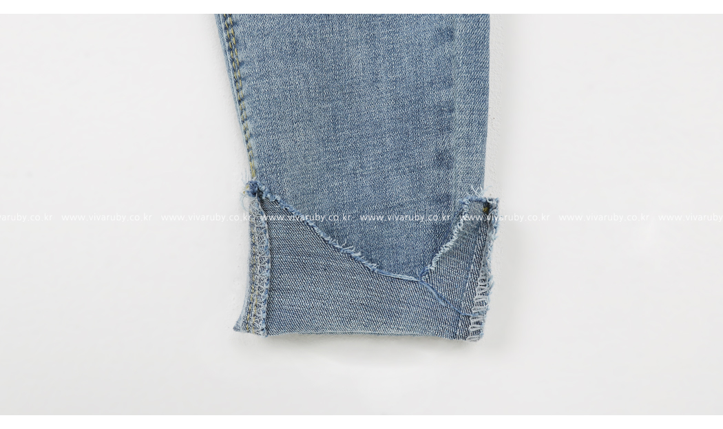 밑단 컷팅과 올 풀림 디테일로 빈티지한 포인트를 주었어요