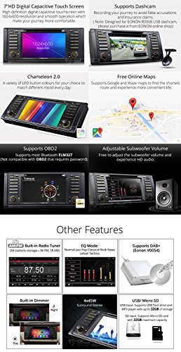 Eonon GA7201 Android 6.0 Car DVD Player Special for BMW E39 1996-2003 Quad Core Marshmallow In Dash GPS Radio Stereo 7 Inch 2 DIN Touch Screen Bluetooth 4.0 Subwoofer Volume Control