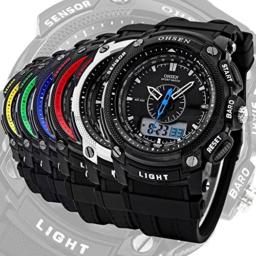 OHSEN 선택 6 색 듀얼 코어 디자인 손목시계 디지털 아나운서 디지털 아날로그 표시 다기능 손목시계 LED 라이트 방수 스톱워치 알람 스포츠 아웃도어 캐주얼 맨즈 레이디