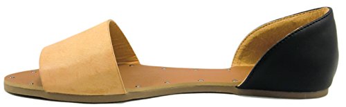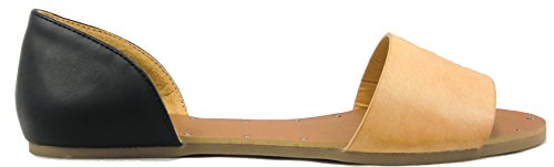 Betani SONYA-1 Women's Easy Slip On Open Toe D'orsay Flats Sandals,7.5 B(M) US,Camel