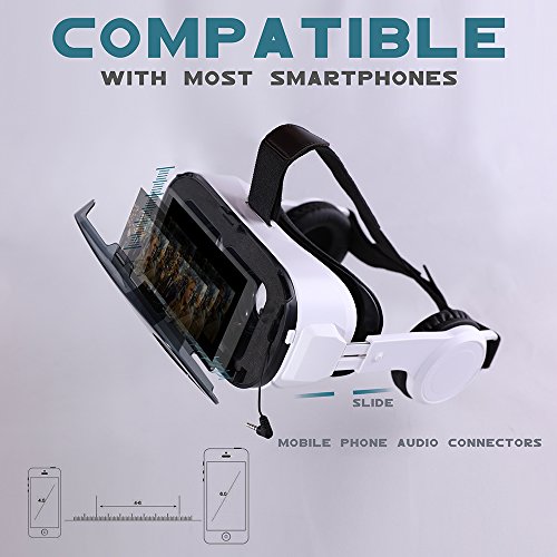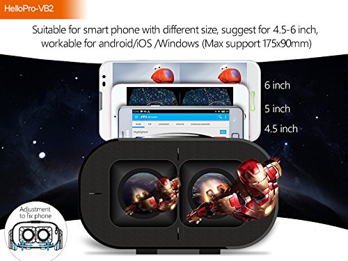 -. Feature : Fit Mobile Phone Configuration: Resolution 1080P and >=4 Core// Mobile Phone Support System: Android, IOS, Windows// Fit Myopia and Adjust Focal Length:0-600°Support naked eye viewing, PD, FD adjustable / Transparent Cover: Environmental protection polycarbonate, High transparent, enhanced virtual reality effect// Lens: Aspheric optical lens design// FOV: HD magnification, 5.2-fold,102 °view / Media Player:Support 3D left-right split screen video playback// Three-end headband: Polyester + Leather / Size: 194*130*135 mm// Weight: 396g// Principal Part: ABS+PC// Architrave Sponge: Foam// Sested Size: 4.5"-6.0" / Fast shipping