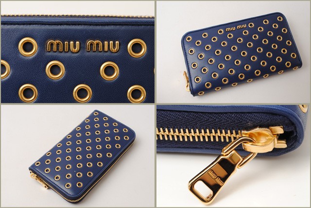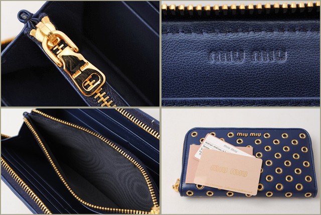 ミュウミュウ 長財布miumiu 5M0506 NAPPA VELE/ナッパ ヴェレ パンチング INCHIOSTRO/ブルー アウトレットミュウミュウより、定番人気の使いやすいラウンドファスナー型の財布です。大きめのパンチングがハードな印象に!立体感を持たせ、ふんわり感のある触り心地が女性に人気です。とっても機能性に優れたお財布で、ポケットがたくさんあり、充実の収納です。財布の中身が多くなりがちな方にもオススメ!miumiu 5M0506 NAPPA VELE/ナッパ ヴェレ パンチング INCHIOSTRO/ブルー アウトレット商品番号 miu-16-081 ライン サイズ 約:W18.5×H10.5×D2 (cm) 素材 NAPPA VELE/ナッパ ヴェレ カラー 本体:INCHIOSTRO/ブルー金具:ゴールド 参考定価 - 付属品 箱、ギャランティーカード 製造番号 特徴 【 外側 】○ラウンドファスナー式開閉【 内側 】○オープンポケット×2○カードポケット×8○マチ付札入れ×2○ファスナー式小銭入れ -商品状態-程度 :ランクNS○アウトレット品、未使用品。○未使用品となっておりますが、若干程度の、経年劣化・スレなど予めご了承くださいませ。【 外側 】○未使用品。○目立つような傷や汚れはありません。綺麗な状態です。【 内側 】○未使用品。○目立つような傷や汚れはありません。綺麗な状態です。注意!○海外直営アウトレット店よりの輸入のため、輸送の途中、箱に、つぶれ・変形がある場合がございます。何卒、ご理解・ご了承いただけます様お願いいたします。