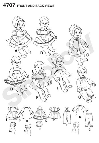 -. Title : Simplicity Sewing Pattern 4707 Doll Clothes, A (S-M-L)