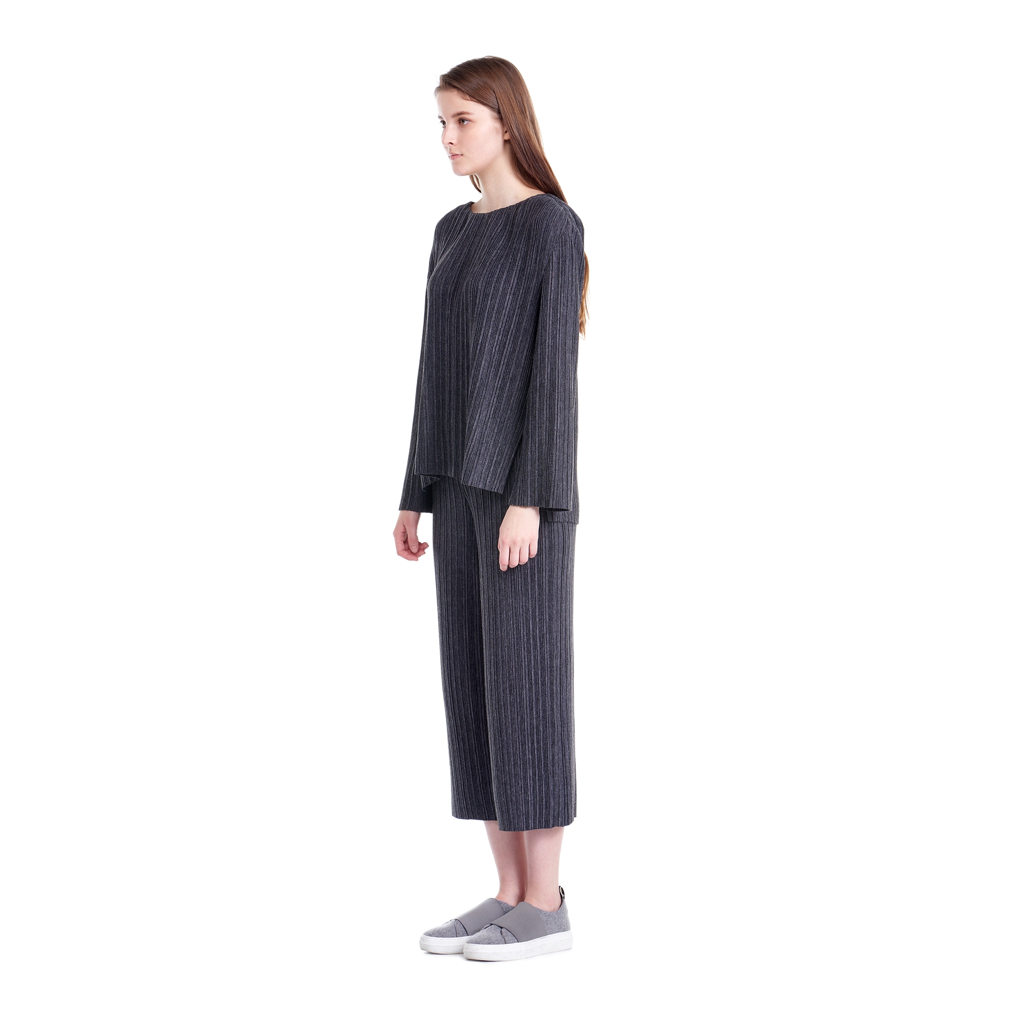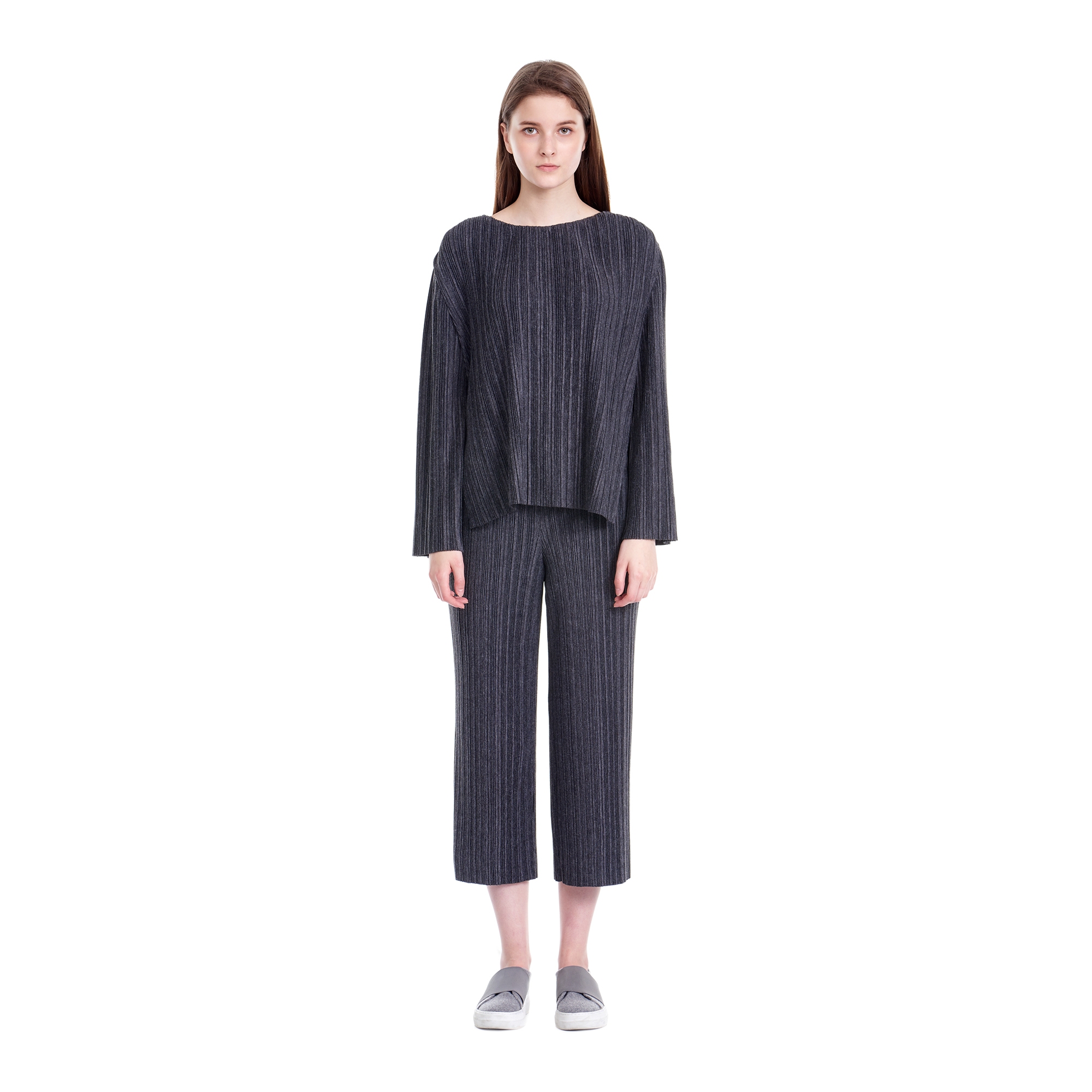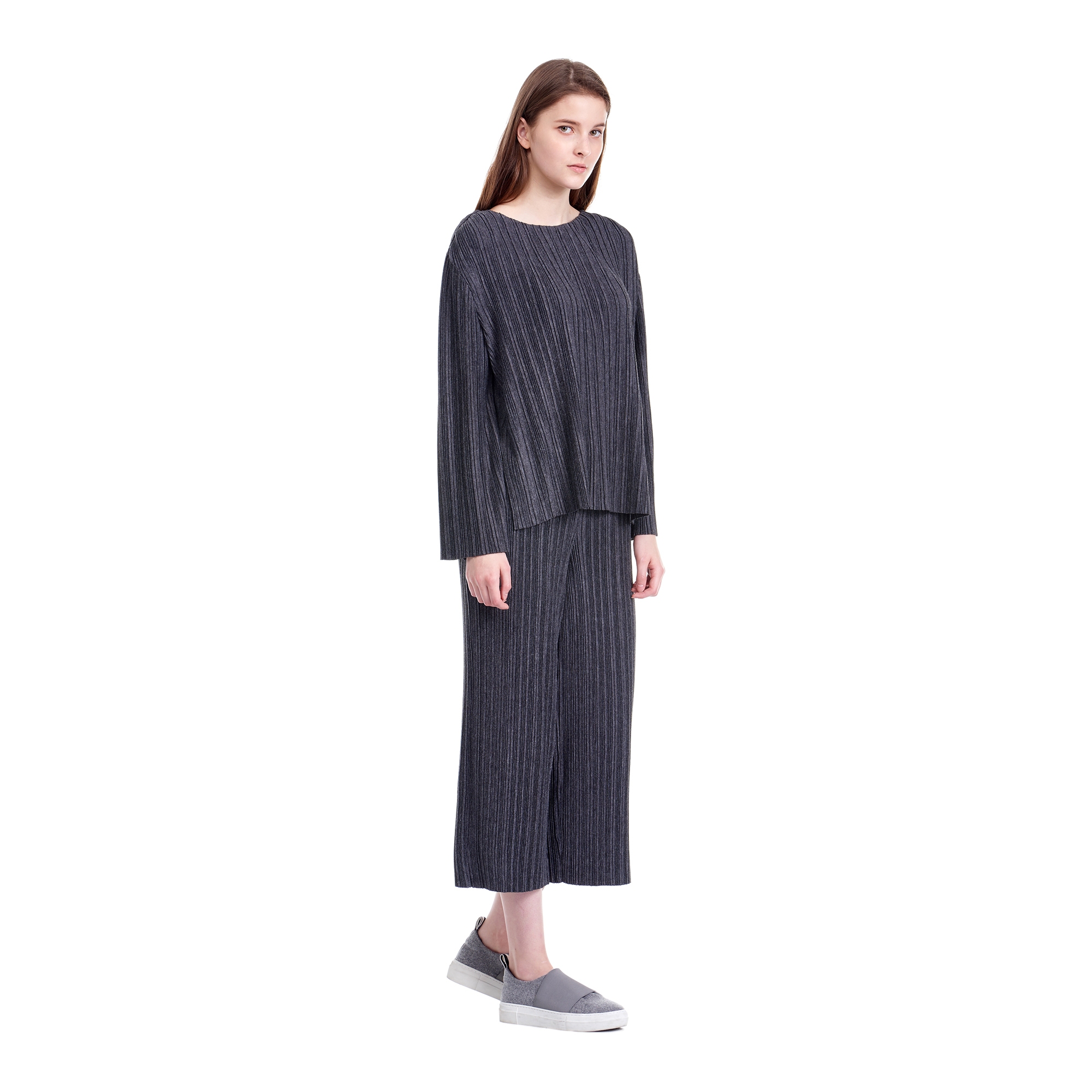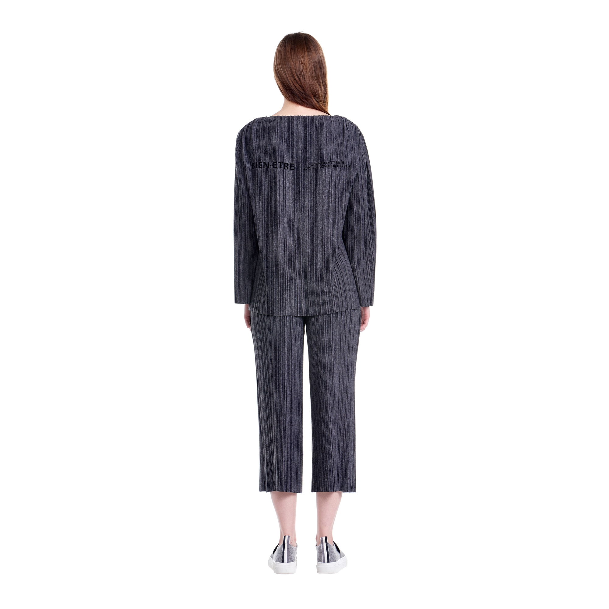 * 컬렉션 : 2016 Fall/Winter디자인 포인트 :등판에 레터링 프린트로 포인트를 준 플리츠 저지 티셔츠스타일링 추천 : 플리츠 저지 팬츠, 데님팬츠, 조거 팬츠와 함께 착용하여 연출가능