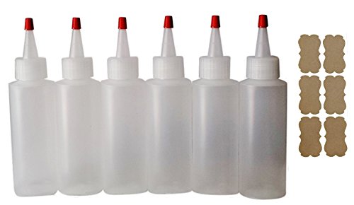 (6) 4 oz Plastic Squeeze Bottles Versatile use - Cake Decorating Paint Crafts Condiments Tattoo Hair Dye 4oz w/ Yorker Caps Bonus Kraft Labels