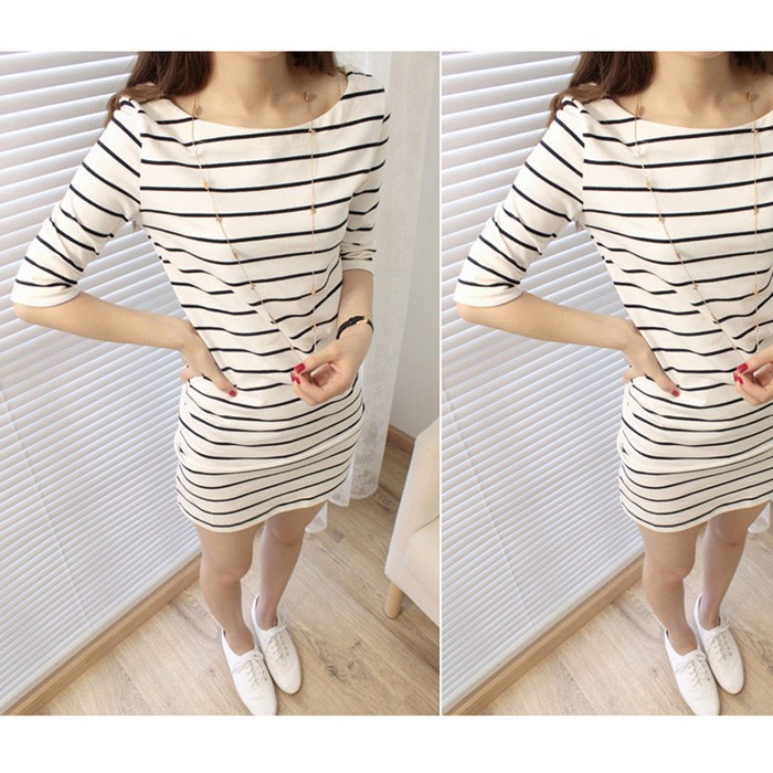 レディース ボーダーワンピース ロンT 五分袖 タイト シンプル Uネック カジュアル ミニ丈 ファッション 2017 新作 【カラー】ホワイト・ブラック【サイズ】【M】 丈:72cm 胸囲:84cm【L】 丈:74cm 胸囲:88cm※製品により多少の誤差が生じる場合がございます。【素材】ポリエステル【ご使用上の注意】着用に問題のない製法のほつれ、商品の性格上、開封された商品・一度でも着用されました商品の返品・交換は一切お受け致しません。イメージと違う、サイズが合わない等の理由での返品は一切受け付けておりません。購入後のサイズ交換は対応しておりません。生産終了後すぐ発送しているため匂いがある場合がございます。ご了承ください。【生産国】made in china※商品はご注文を頂いてから2週間前後の到着となります。
