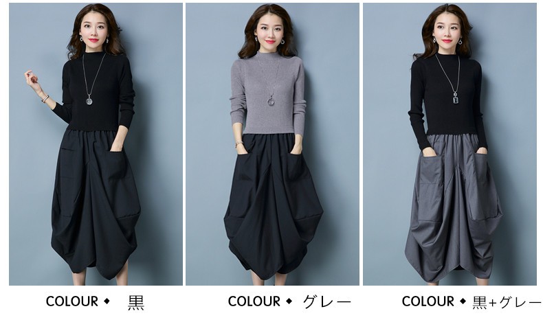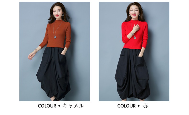 ■キーワード:ワンピース レディース ニットワンピース 膝丈ワンピース ミモレ丈 ニット ワンピース ドッキング 秋 長袖 体型カバー ゆったり 着痩せ 秋 冬 ニット ワンピース カシュクールニットワンピース ニットソー エレガント 上品 女性 秋新作 30代 40代 50代★素材:ポリエステル★厚さ:普通 ★伸縮性:あり★生産国:中国★カラー:赤/キャメル/黒/グレー/黒-グレー (写真参考)※お客様ご使用のPC環境により商品画像のカラーが多少異なる場合があります。仕入時期により多少デザインなど異なる場合があります。ご了承ください。★サイズ(cm)M:着丈110 バスト90 肩幅36 袖丈56L:着丈111 バスト96 肩幅37 袖丈57XL:着丈112 バスト100 肩幅38 袖丈582XL:着丈113 バスト106 肩幅39 袖丈59※サイズは人の手によって測っているため、(2-3 cm前後)に誤差が生じる場合がございますので、予めご了承くださいませ。