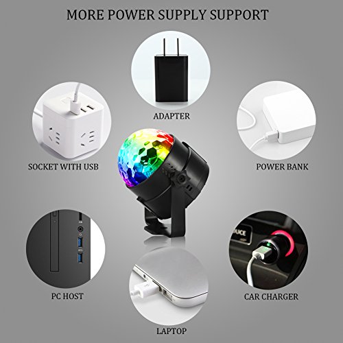 - SAFE AND CONVENIENT: With USB power supply, this disco ball light can work with PC, laptop, power bank, car charger, adapter, socket with usb and so on, very convenient. 5V power supply voltage is safe for everyone including children.