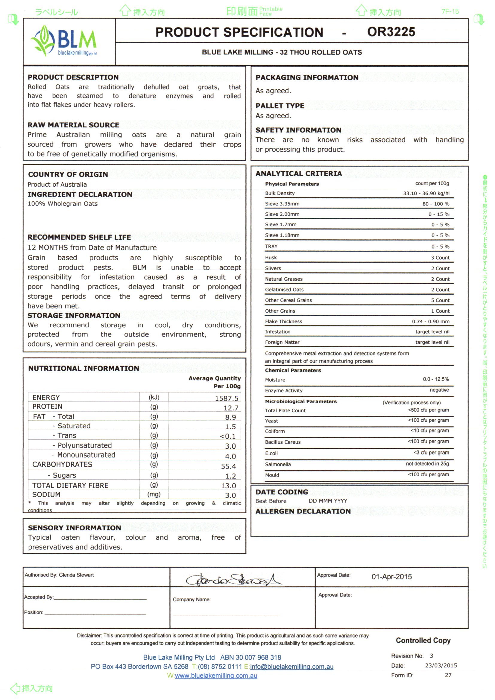 Processing process will increase in order of Rold Oats → Quick Oats → Instant Oats.
