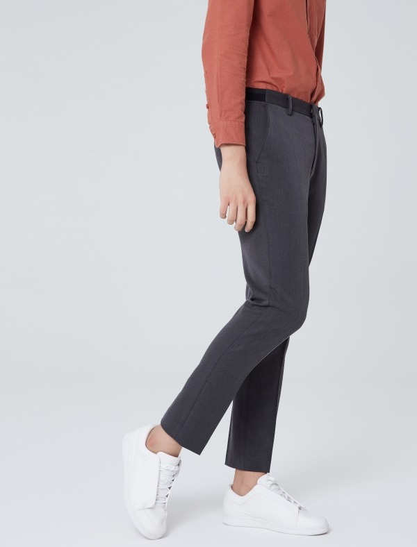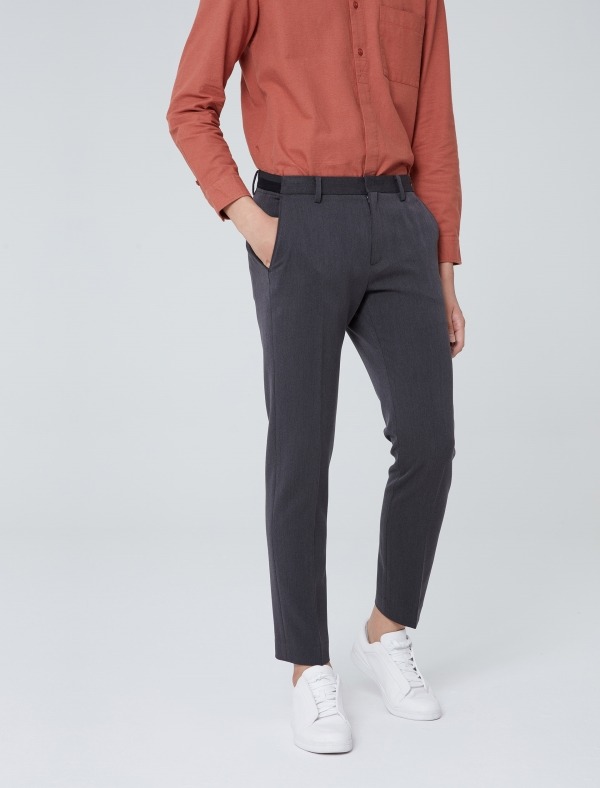 - 상품설명 허릿단 사이드 밴드를 적용한 디자인의 테이퍼드 핏 팬츠입니다 . 신축성이 우수한 폴리 스판 소재로 편안하며, 허릿단 이면 후크 여밈으로 단정합니다 .양 사이드 포켓과 백 포켓이 구성되어 있어 약간의 소지품 수납이 가능합니다. 솔리드한 컬러 디자인으로 다양한 상의와 코디 연출이 용이합니다.