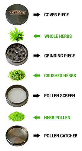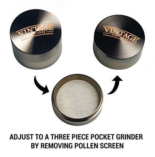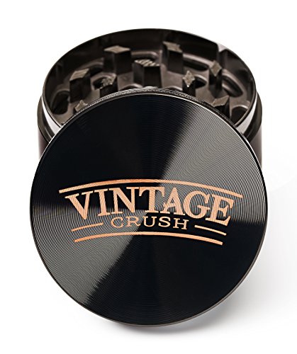 Vintage Crush HEAVY DUTY 2.5-Inch Herb Grinder with Pollen Catcher, Carry Case Scraper and Brush, Space Gray