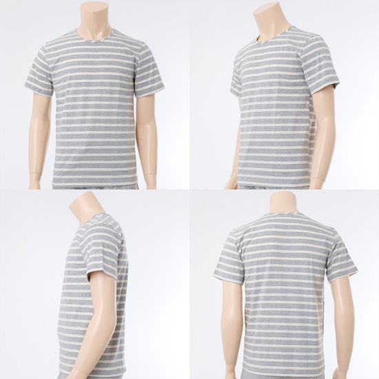 베이직한 그레이 컬러감의 스트라이프 상의입니다.
