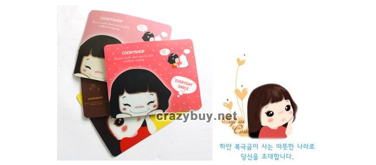 The korean Cooky Shop Mouse Pad offers you comfort and ease of use while you work on your system. It features a uniquely designed cover for an appealing look. Use this foam mouse pad to prevent scratches and wear to your desk's surface. It works well with an optical or a standard mouse for versatility. The non-skid backing keeps it in place at all times, allowing smooth movement across the top. Use the 3M mouse pad in your home or office to brighten up your workspace. It is low-profile and durably made to ensure long-lasting performance. The pad can be used on wooden or glass desktops.