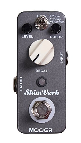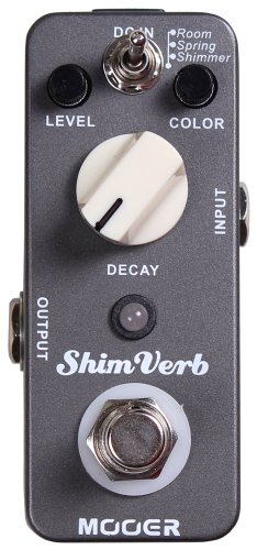 Studio : Mooer Publisher : Mooer Binding : Electronics Product Description Mooer Audio micro effect pedals pack an incredibility BIG sound into a very small package. Our ShimVerb digital reverb has 3 reverb modes: Room, Spring, Shimmer. The room mode has different sized true acoustics reverb, from room to hall; the spring mode is good for vintage 60's surfing sound; the shimmer mode is very popular in Post Rock music. All Mooer pedals have a 1 year warranty. 0