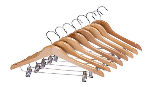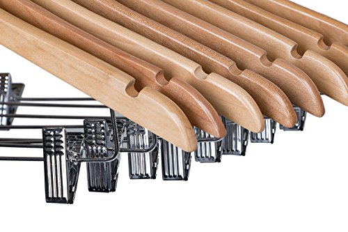 -. Feature : Sturdy wood construction - designed to hold all shapes and styles of pants, shirts and coats / 360 degree swivel anti rust hook, sturdy construction to fit all standard closet rods / Space-saving design - you can hang shirt and pants at once on one hanger, keep your closet organized / Durable and elegant - made of maple, natural wood grain, natural finished / Protect your delicate clothes - two adjustable anti-rust clips with soft felt lining to safely grip even delicate garment