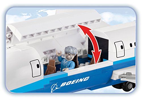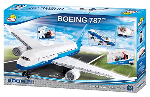 Build the Boeing Dreamliner 787 and travel around the world. The set contains 600 pieces and 2 figures: a pilot and a passenger. The miniature model faithfully reflects the real aircraft. It is designed with attention to the tiniest detail and equipped with moveable parts such as wheels, landing gear and openable cockpit.