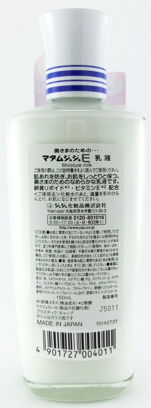 "Juju Cosmetic Madame Juju E Latex" is a milky lotion of Skin Care series recommended for care from around 25 years old, beginning to feel skin weakness.