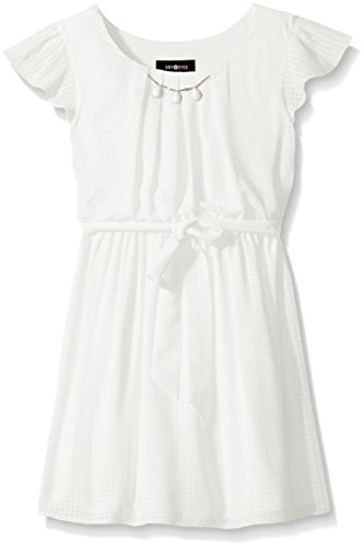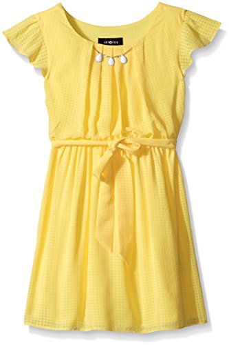 Flutter sleeve, pleated neckline with half necklace with self belt