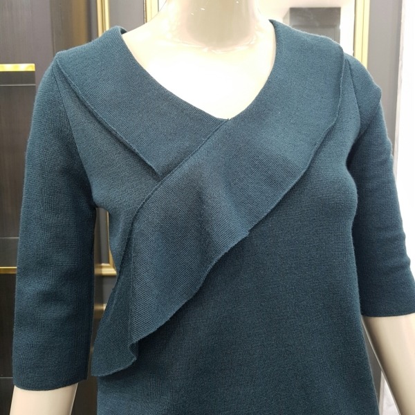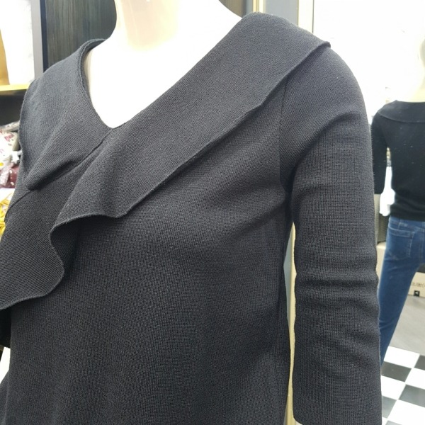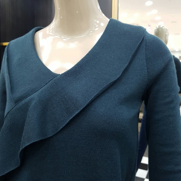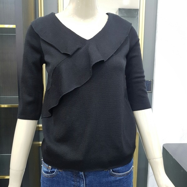 프릴장식이 여성스러운 브이넥 칠부 니트입니다