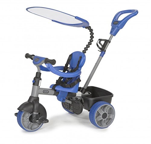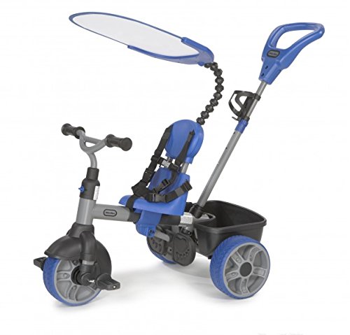 -. Binding : Toy -. Brand : Little Tikes -. Color : Pink -. Department : baby-boys -. EAN : 0783719954733 -. Feature : Durable, quiet-ride tires; Non slip pedals; Footrests fold away and detach / Seat adjusts to 4 positions almost any size child; 5-point seat belt harness and protective safety bar / Adjustable, detachable push handle that allows parent to control direction with one hand / Durable metal/plastic construction; Convenient beverage holder / Extra large storage bucket w/dumping feature -. IsAdultProduct : 0 -. Label : MGA Entertainment -. Manufacturer : MGA Entertainment -. Model : 634314C -. MPN : LTD -. NumberOfItems : 1 -. PackageQuantity : 1 -. PartNumber : LTD -. ProductGroup : Toy -. ProductTypeName : TOYS_AND_GAMES -. Publisher : MGA Entertainment -. ReleaseDate : 2013-12-17 -. Studio : MGA Entertainment -. Title : Little Tikes 4-in-1 Ride On, Blue, Basic Edition -. UPC : 783719954733 -. Warranty : 90 day warranty against manufacturer defects