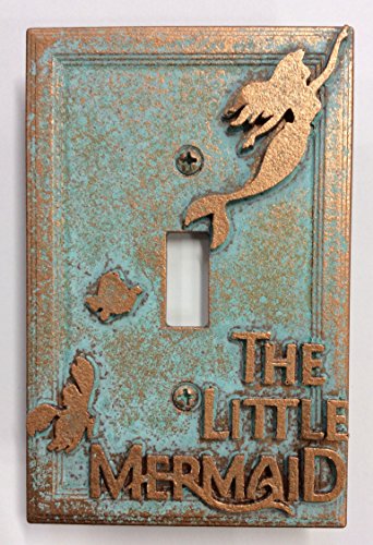 Studio : Sci-Collectables Publisher : Sci-Collectables Binding : Kitchen Product Description The Little Mermaid Light switch Cover. Aged Copper in color, aged patina paint effect. Faux finish, not real metal, or stone. Raised/Embossed design. Screws painted to match. Plate measures 3-1/4"x5". (8.25cmx12.7cm) 0