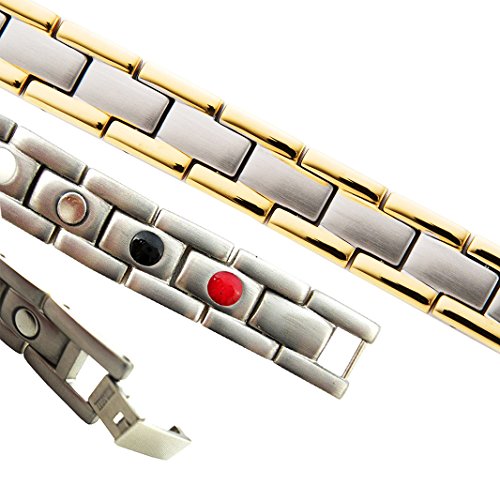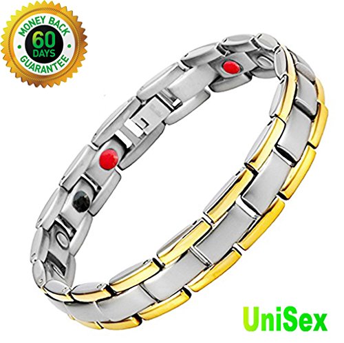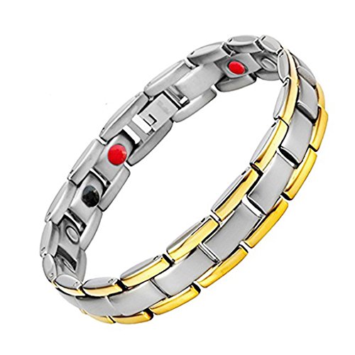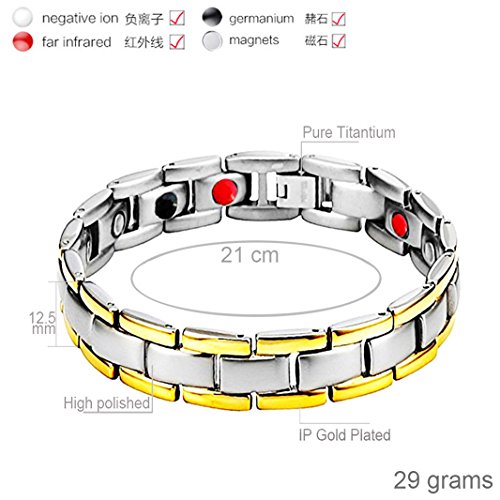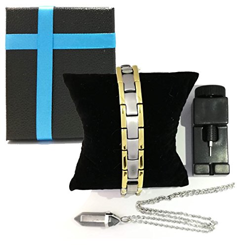 Are you experiencing these symptoms associated with any of the following Pain from Arthritis, Carpal Tunnel, Tennis Elbow, Tendonitis, Repetitive Strain Injury (RSI) Pain and inflammation in the shoulders, arms, wrist or hands. Poor circulation associated with Diabetes; cold hands and feet. Migraine Headaches, Fatigue, Insomnia (difficulty sleeping), Stress Anxiety Poor Magnetic Therapy Does Wonders For Your Body Magnetic therapy has been used for years to help alleviate pain, reduce inflammation, and improve blood circulation.It is also used to reduce stress anxiety, improve sleep, and enhance overall balance and mood. How dose the element work? Negative Ions: Enhance the oxygen inhalation of lung to increase the saturation of oxygen in blood.It improve respiratory system,nervous system,digestive system,immune system. Far Infrared Red (Fir):Treatment of chronic inflammation,improve blood circulation, increase cell phagocytosis, eliminate swelling, promote inflammation dissipation. Germanium Powder:Elevate body temperature,promote blood circulation and relieve fatigue,anti-radiation from computer or cellphone. Neodymium Magnets 3000 Gauss :Promote the blood circulation and immunity of the human body,improve body's endocrine, reduce fatigue, anti-aging,especially has good curative effect to veriety of chronic disease,heart disease etc. What Package Include: 1PCs x Titanium Magnetic Bracelet 21cm(8.2")* 1.3cm(0.5") 1PCs x Natural Hematite Necklace Pendant 1PCs x 316L Stainless Steel Necklace Chain (50cm,20inch long) 1PCs x Bracelet Link Adjusting Tool 0