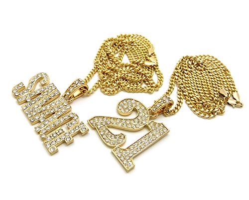 -. Feature : Brand New Hop Hop Necklace Set / '21' Pendant Size: 1.45 " x 1.85 ", SAVAGE Pendant Size : 2 " x 1.5 " / RC2714G - Cuban Chain Size: 3mm / 24"&30 " Cuban Chain / RC2715G - Box Chain Size: 2mm / 24"&30 " Box Chain / RC2616G - Rope Chain Size: 2mm / 24"&30 " Rope Chain